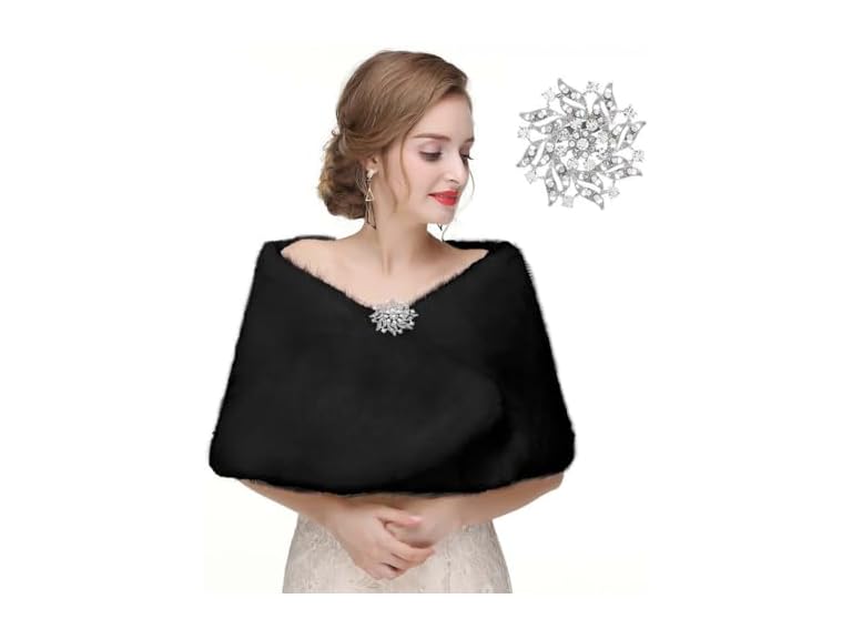 - Wedding fur wraps for bridesmaids made of soft faux fur , satin and clasp ,easy to wear .We will send you a free brooch, which can be adjusted in size and used as decoration