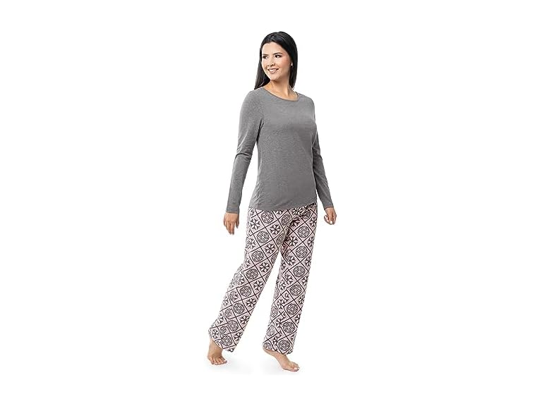 - (1) Fruit of the Loom Women's Sueded Jersey Crew Top and Fleece Pant Sleep Set, Heather Grey/Snowflake