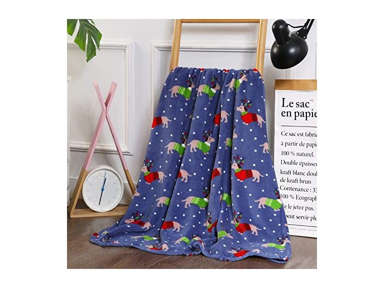 - (1) Elegant Comfort Luxury Velvet Super Soft Christmas Prints Fleece Blanket-Holiday Theme Home Décor Fuzzy Warm and Cozy Throws for Winter Bedding, Couch and Gift, 50 x 60 inch, Dogs in Sweater