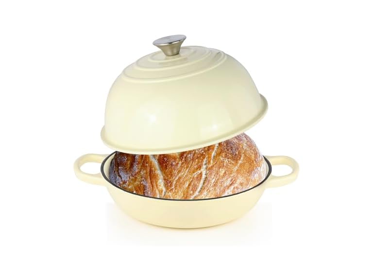 - DOME LID DESIGN: The tight-fitting dome lid locks in steam and flavor, creating the perfect environment for sourdough bread with a golden, crispy crust and soft interior. Its unique shape allows dough to rise fully, ensuring professional-quality homemade bread every time.