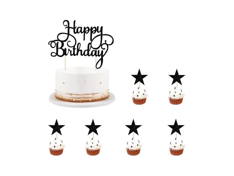- LVEUD Set of 7 pieces black flash Happy birthday cake toppe ,Happy Birthday cake topper and Pentacle cake topper-Birthday cake decorations
