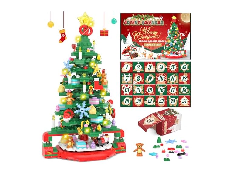 - Advent Calendar 2025: Look at this Christmas Tree building bricks advent calendar designed for countdown to christmas. The set contains 24 numbered boxes building blocks, total 593 pieces. Open 1 box each day and finish one section of the Christmas tree between December 1st to December 24th. The advent calendars 2025 come with detailed instructions manual to guide you build christmas building blocks step by step.