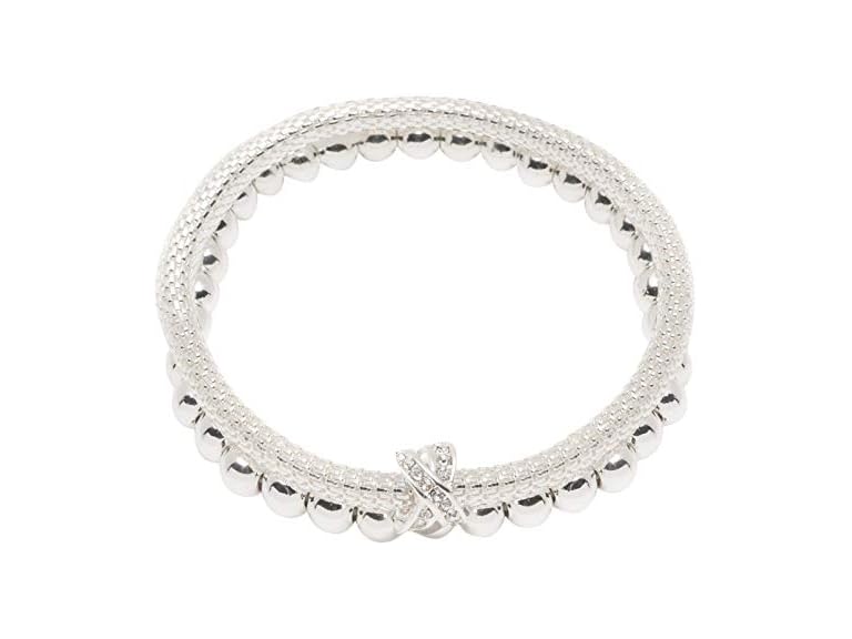 - 2 Row Crystal Bead Stretch: Worn together or individually these stylish silver-tone bangles look great morning to night