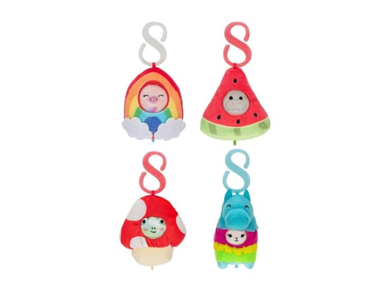- MUST-HAVE Comes with (4) 2” Squishmallows and (4) plush accessories with a clip! Squeeze your Squishmallows in the accessories and take them on the go