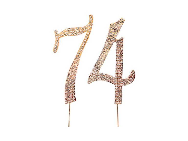 - (1) MAGJUCHE Gold 74 Crystal Cake Topper, Number 74 Rhinestones 74th Birthday Cake Topper, Men or Women Birthday or 74th Anniversary Party Decoration Supply
