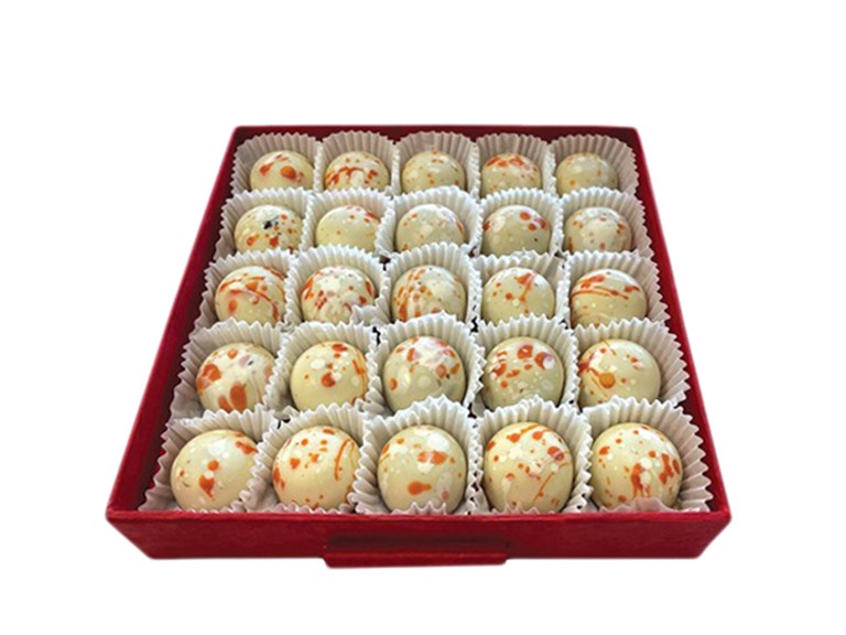 Description: Smooth chocolate ganache infused with mashed pumpkins, espresso and fall spices. A seasonal favorite!