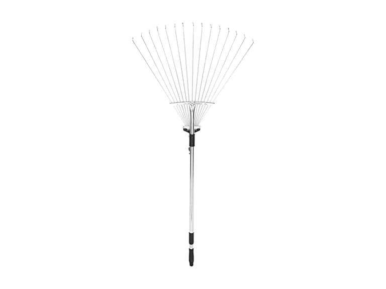 - 【Reaches The Smaller Places As Well】The rake’s teeth extend from 7 . 5in to 21 . 7in wide and lock in any position in between . This rake can be put to work in smaller areas , like under hedges , or in between flower beds without damaging your plants .