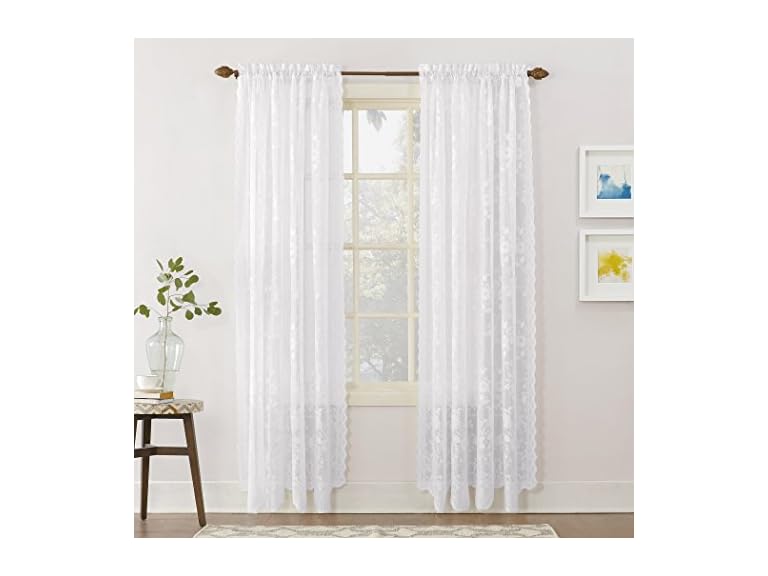 - (1) No. 918 Alison Floral Lace Sheer Rod Pocket Curtain Panel, 58" x 72", White