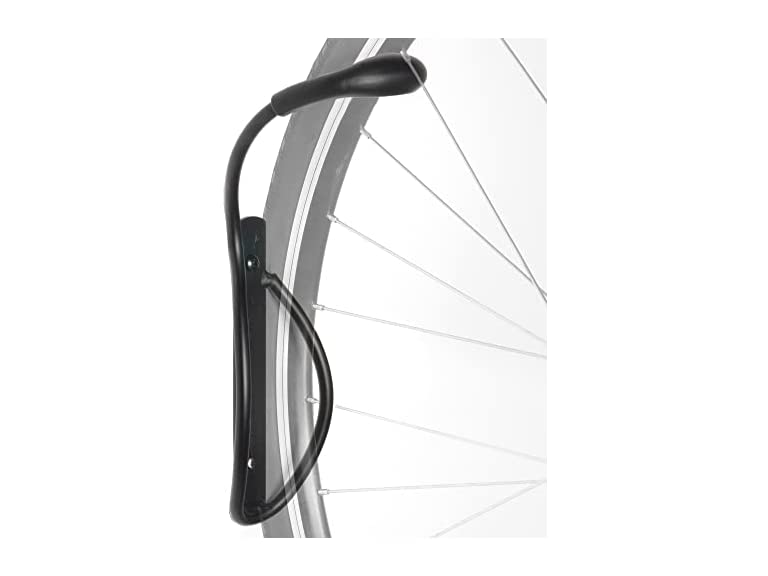 - Looks Good in Any Room: The bike mount’s contemporary and elegant product design with premium powdercoated finish complements any apartment, office, or garage space. The hanger features a non-slip rubber-coated hook to protect your tire rim.