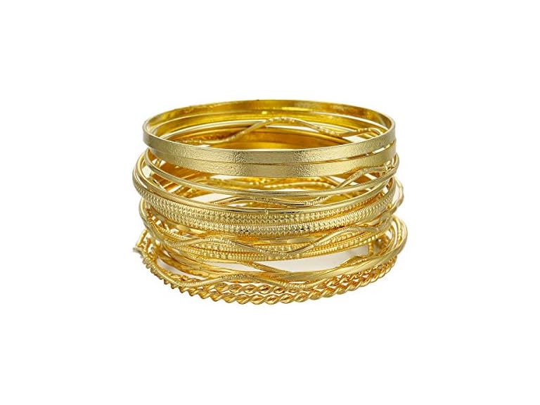 - (1) Ensoul Gold Waved Twisted Textured Multiple Metal Women Bracelets & Bangles Set 18Pcs/Set