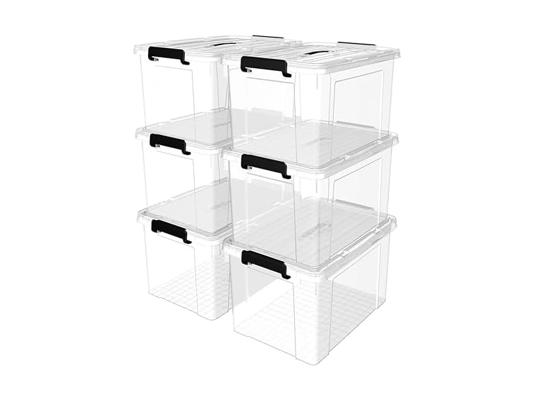 - Stackable - Plastic Clips Lid Storage Bin Has Grooves on Top of the Lid, Even Able to Ensure the Stable Stack When Using, Help to Save More Space in Your House, Apartment or Garage
