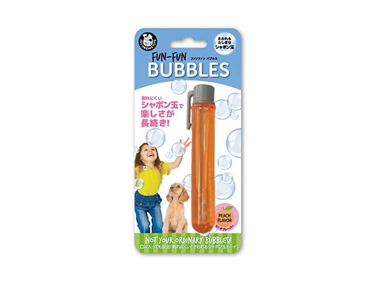 - FLAVORED BUBBLES: These amazingly durable bubbles don't pop right away when they land, creating an exciting playground for your pet. Peach flavored