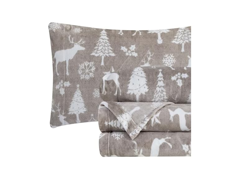 - (1) Elegant Comfort Luxuriously Soft 4-Piece Holiday Velvet Plush Flannel Sheet Set - Premium Quality - Cozy Warm, Christmas Fuzzy Velvet Flannel Fleece Deep Pocket Sheet Set - Cal King, Silver Reindeer