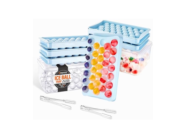 - EFFORTLESS ICE RELEASE: Crafted from durable, flexible plastic, these ice cube trays release ice balls with a simple twist. Each of the six trays produces 33 round of ice, totaling 198 ice balls, perfect for filling an ice bucket or container.