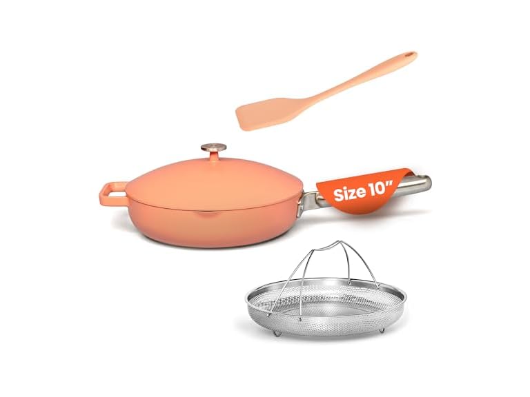 - ONE PAN TEN FUNCTIONS – Sauté, Steam, Fry, Sear, Broil, Boil, Strain, Bake, Roast and Braise; Seamlessly goes from stovetop to oven to your dining table
