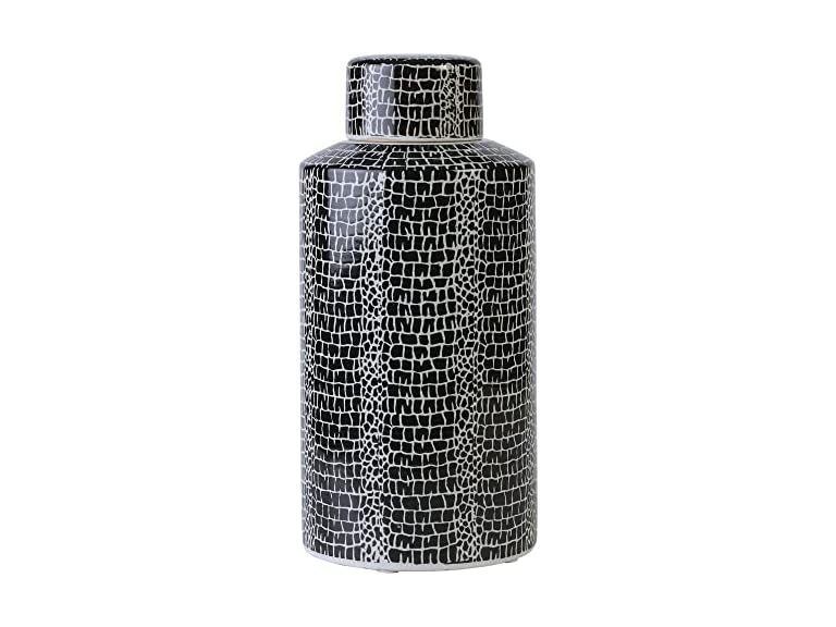 - (1) Mikasa Blue Crackle Ceramic Canister, Store Small Household Items or Display Faux Florals, 6 X 12.5 INCH, Black and White