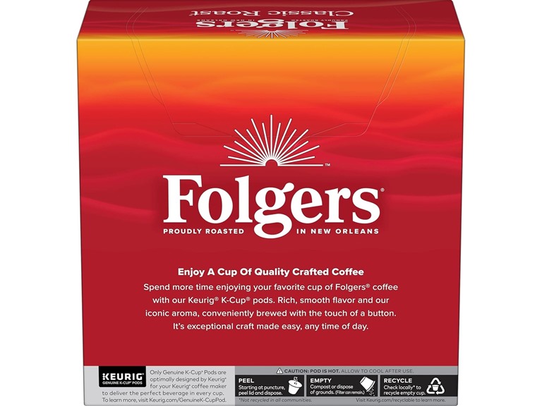 - Contains one (1) thirty-two (32) count package of Folgers Classic Roast K-Cup pods