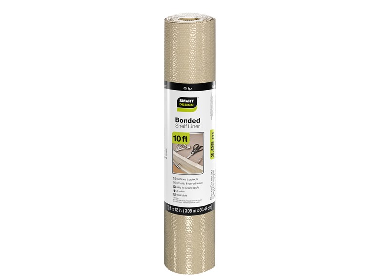 Smart Design Shelf Liners cushion and protect your surfaces and home goods from everyday wear and tear. Our selection of colors and designs will add style and freshen up your shelves, drawers and closets. Package Includes Bonded Grip Shelf Liner. For covering shelves, cabinets, closets, drawers, arts & crafts. Features and Benefits Easy to cut and apply with no adhesive to get in the way of application. Wipes clean w/ a damp cloth.