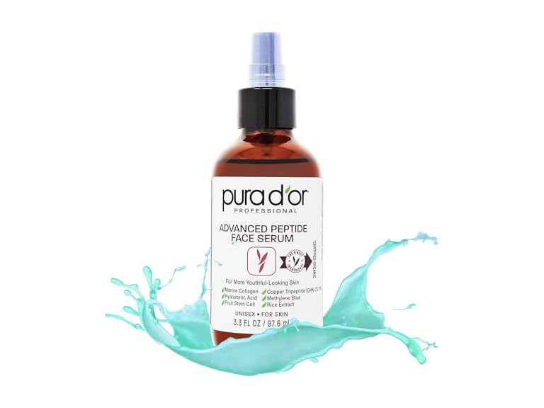 - PURA D'OR 3.3 Oz Advanced Peptide Anti-Aging Face Serum w/ 1% Copper Tripeptide, Methylene Blue, Marine Collagen, Hyaluronic Acid, Fruit Stem Cell & Kelp For Hydration, Firming & Youthful-Looking Skin