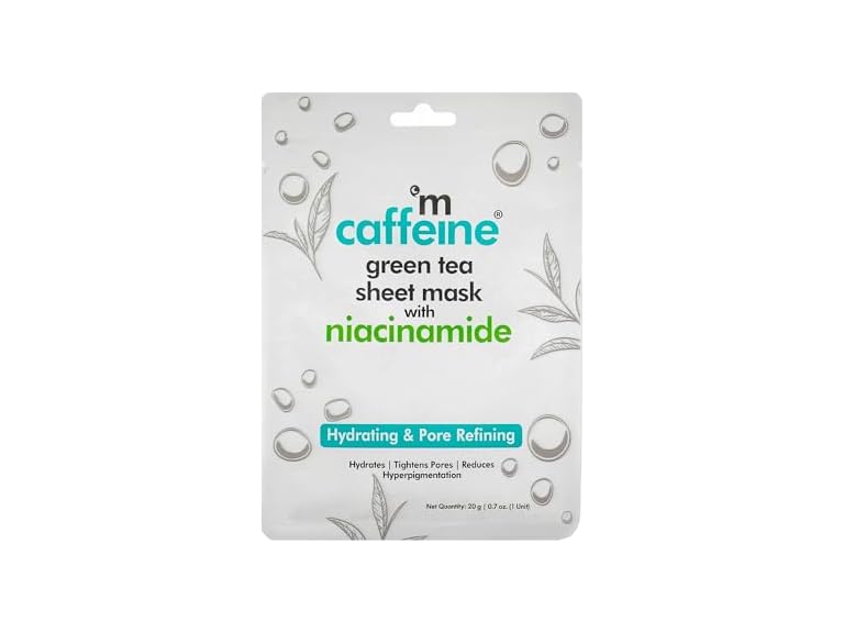 (1) mCaffeine Green Tea Sheet Mask with Niacinamide - Hydrating Face Masks for Pore Tightening - Reduces Hyperpigmentation, Improves Skin Texture - 1 pc