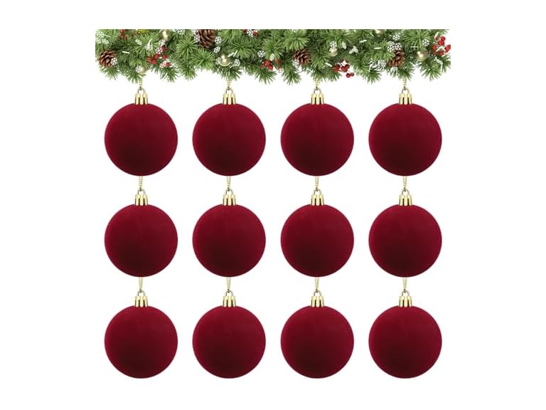 - Package Included: You will receive 12 Christmas tree decorations, Set of 12 velvet burgundy red Ball Ornaments measure 2.38-Inch in diameter. You can distribute them throughout your tree or use them in multiple areas of your home to create a festive atmosphere.
