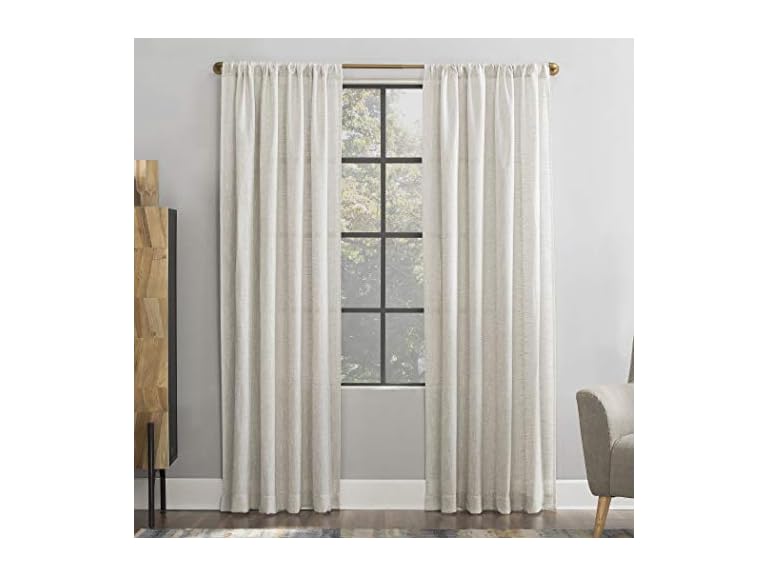 - (1) Scott Living Wallis Crosshatch Slub Textured Linen Blend Sheer Rod Pocket Curtain Panel, 52" x 96", Ivory