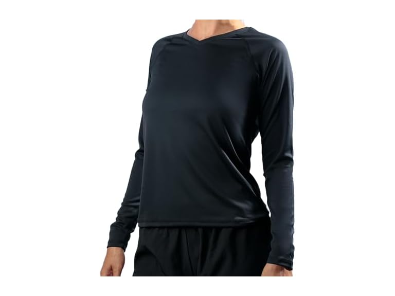 - Long-sleeve rashguard with V-neckline and raglan seaming