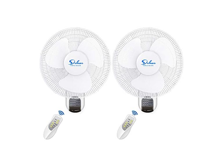 - (1) Simple Deluxe 16 Inch Wall Mount Fan with Remote Control, 3 Oscillating Modes, 3 Speed, Timer, 2 Pack