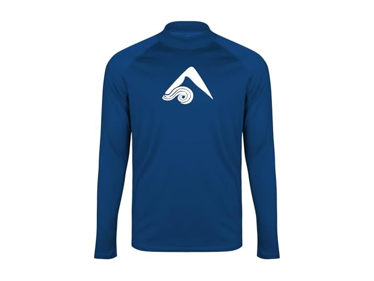 - Long-sleeve rashguard featuring mock neck and logo emblem at center chest