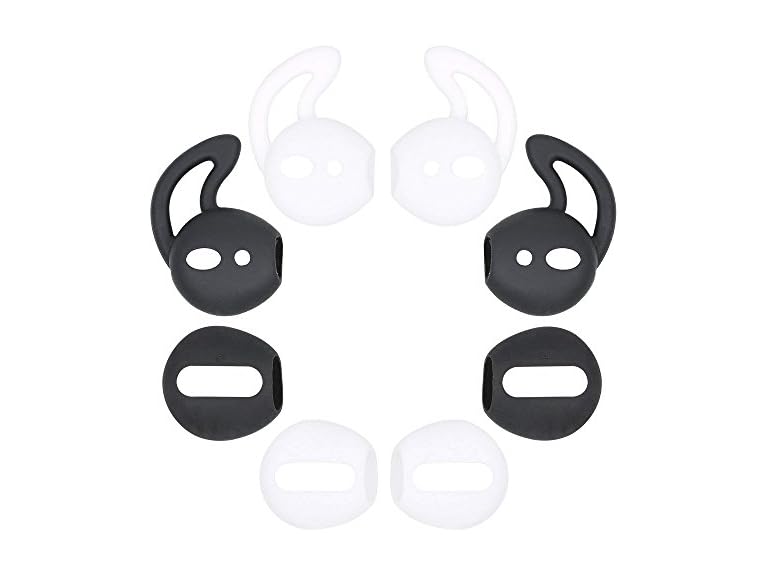 - (1) JNSA 4 Pair Ear Tips Silicone Cover Compatible with AirPods, 2X Super Thin Eartips [Fit in Case] & 2X Anti-Drop Sports Ear Hook Gel [Protective & Great Noise-Isolation], White Black