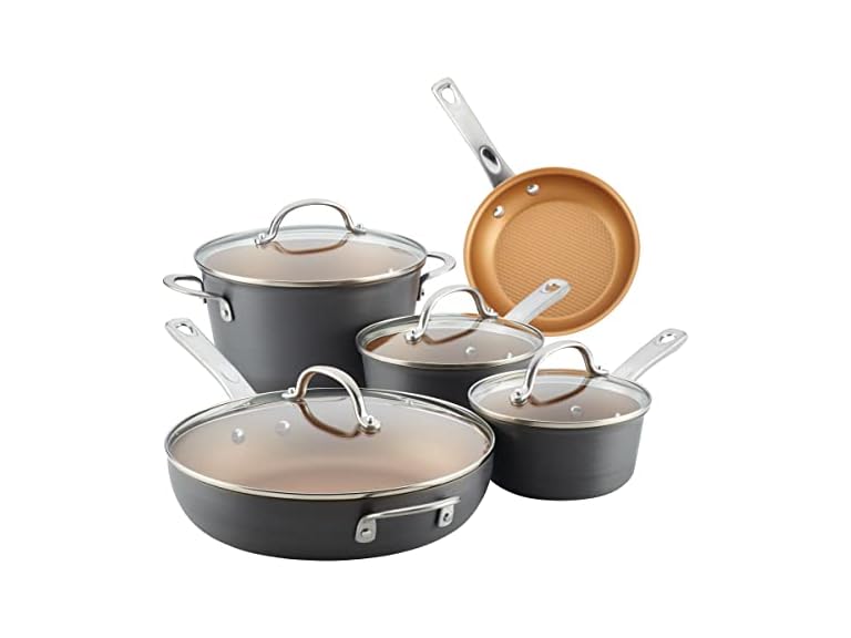 - (1) Ayesha Curry Home Collection Hard Anodized Nonstick Cookware Pots and Pans Set, 9 Piece, Charcoal Gray