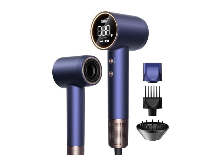 - Smart Display, Hair Care Precision: Alloom Blow Dryer Pro features a smart temperature control display with 5-level visual adjustment, from cool air to 150°F professional styling heat. Each degree is precisely tailored for different hair types and needs. Green cool air preps the scalp, 130°F cares for fine hair, and 150°F sets styles without scalding. Hot-cold cycles help seal cuticles and boost hair elasticity by 22%. No more guessing—achieve salon-level precision styling at home with every use.