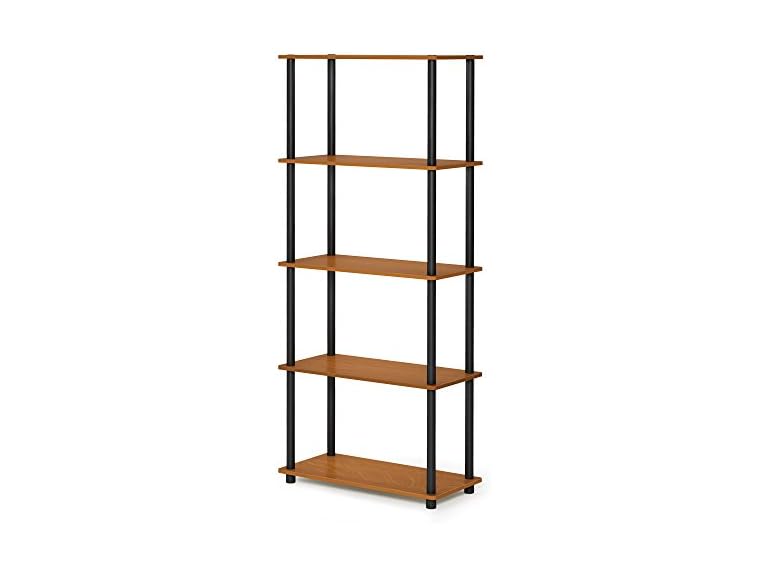 - (1) Furinno TURN-N-TUBE Storage Shelves, 5-Tier Book Shelf, Corner Shelf, Toolless Open Shelves, for Organization and Storage, Living Room, Garage, Home Office, Light Cherry