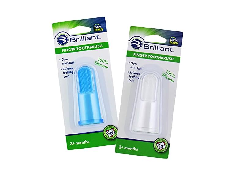 - (1) Brilliant Baby Finger Toothbrush - Silicone Gum Massager and Teether Brush for Infant-Toddler, 3 Months Old and Up, Blue/Clear, 2 Count