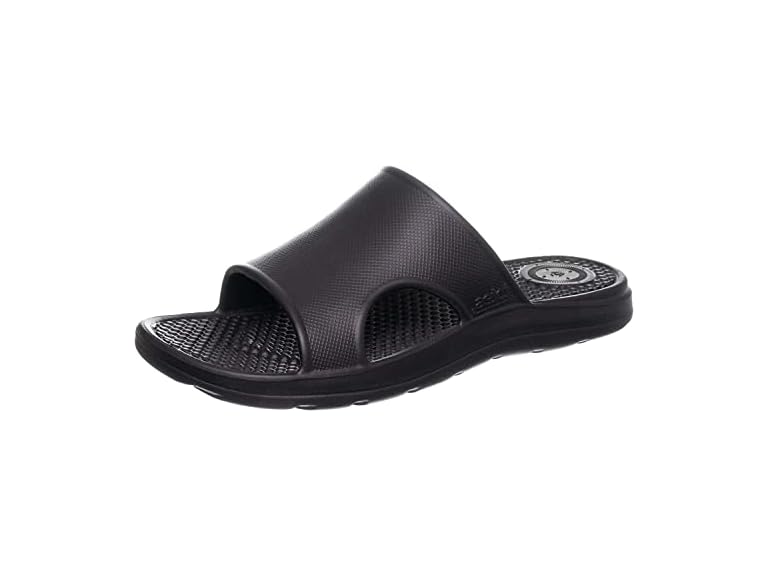 - FLEXIBLE INNOVATION: Soft, supportive, and flexible - you’ll want to wear these slides everywhere. They're naturally waterproof, anti-microbial, puncture resistant and even float when dropped in water, making them perfect for the beach or pool.
