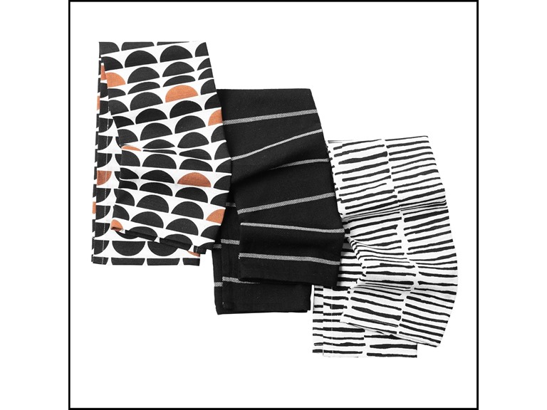 - (1) No. 918 Marrin 3-Piece Modern Kitchen Towel Set, Black and White
