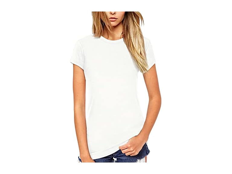 - (1) Beluring Women Crew Neck Tops Short Sleeve Casual Summer Tunic Basic Soft Tshirt (White, M)