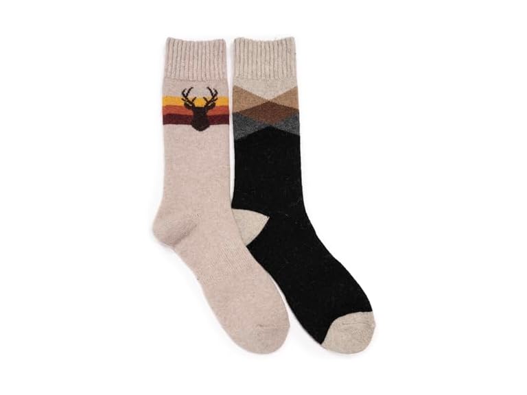 - (1) MUK LUKS Men's Wool Socks (2 Pair Pack), Multi, OS