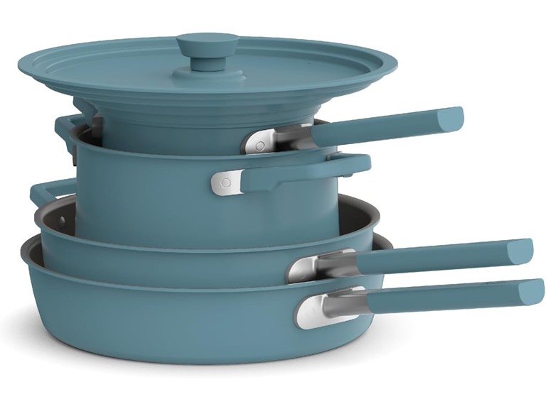 The bella 9-Piece StoreMore Cookware Set is the perfect blend of functionality and space-saving design, ideal for home chefs who want performance without sacrificing kitchen space. Each piece nests together, saving up to 50% more space, making it perfect for any kitchen, big or small, this pots and pans set complements any kitchen décor and is a thoughtful addition to wedding registries, housewarming gifts, new apartments, or even college dorms. Crafted with our EverGood Ceramic Nonstick Coating, which is free from PFAS, PFOA, PTFE, lead, and cadmium, you can cook with confidence knowing that your meals are healthier and your cookware is eco-friendly. This versatile set includes a 2qt saucepan, a 5qt saucepan, a 10" deep wall fry pan with a helper handle, and a 3.5qt sauté pan—perfect for creating a wide range of dishes. Imagine whipping up a vibrant Moroccan tagine, a rich and creamy Thai coconut curry, or a colorful Spanish paella, all with ease. Compatible with all stovetops, including induction, and oven safe up to 325°F, this non stick pots and pan set offers flexibility and convenience. Plus, cleanup is a breeze with dishwasher-safe pieces, though hand washing is recommended to maintain their pristine condition. The cooking set is not just a practical addition to your kitchen—it’s a stylish, thoughtful gift that’s perfect for any occasion.