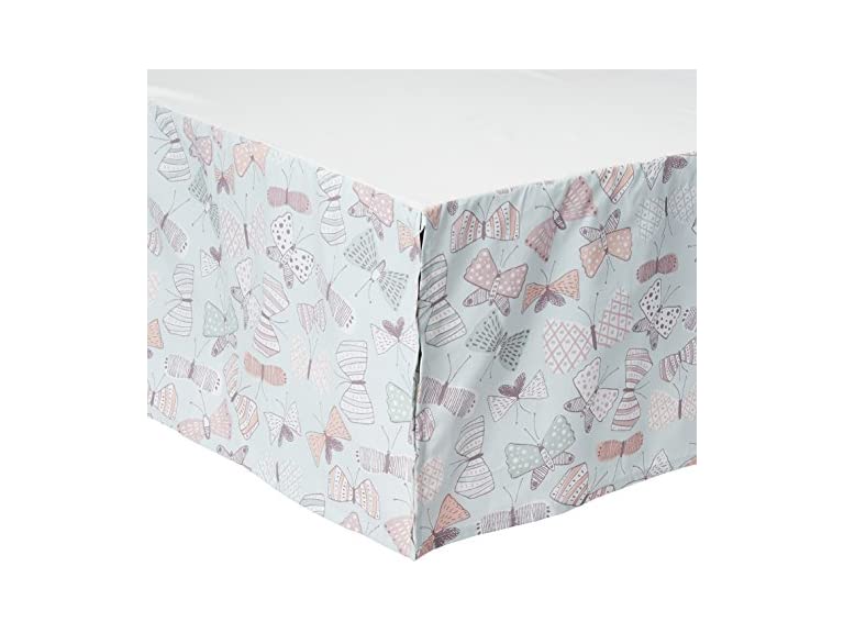 In the Box:- (1) DwellStudio Arden Butterfly Print Crib Skirt, Violet/Pink/Gray