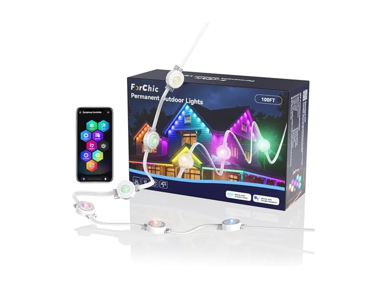 - Triple-LED Design: ForChic permanent outdoor lights, featuring triple-LED technology that combines 16 million RGB colors with independently controllable warm and pure white LEDs. This setup provides up to 45 lumens of brightness and an adjustable color temperature range from 2800K to 6000K.