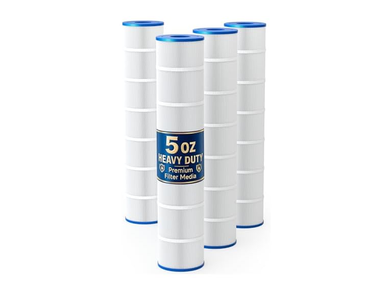 - Premium 5oz Heavy-Duty Filter Media – Made with 5oz trilobal spunbond polyester, nearly twice as dense as standard 3oz filters. Provides higher fiber density, stronger pleat integrity, and finer filtration down to 10 microns, ensuring cleaner water and longer service life.