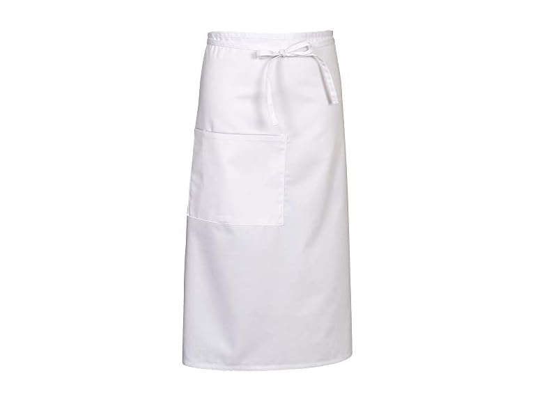 Bistro Aprons allow your waitstaff to keep track of checks, pens, notepads, and other important items, while still keeping their uniforms clean. The Long Bistro Apron is our most popular option, because of some of its great features. Choose from black, navy, white, mocha, nutmeg, sage, black & white chalk stripe, and black pinstripe, so you can easily coordinate the apron to your restaurant’s brand colors, seasonal specials, kitchen décor, or your personal color preferences. Custom embroidery is also available on this apron with 19 thread colors and 7 font selections to choose from. It’s comfortable. Many people prefer this style and length of apron. It ties easily around your waist. It has a patch pocket with a pencil insert to provide easy storage for anything your waitstaff may need to carry. The apron is 32 inches long and will extend well below the knee to protect your staff's uniforms from spills and other stains. It’s Durable. The Long Bistro Apron is made from a long lasting 7.5 ounce 65/35 poly-cotton twill and is protected with a ProDura Soil Release. The thicker fabric and finish help to protect against stains, prevent fading and provide increased durability. It’s no surprise that this is our most popular bistro apron.