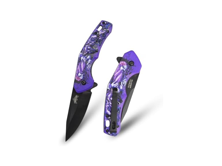 - MASTER USA Folding Pocket Knife, 8.22-Inch Overall Length, Embossed ABS Handle, 3Cr13MoV Steel Drop Point Blade, Liner Lock, Everyday Carry (Purple)