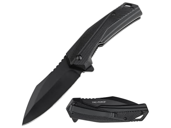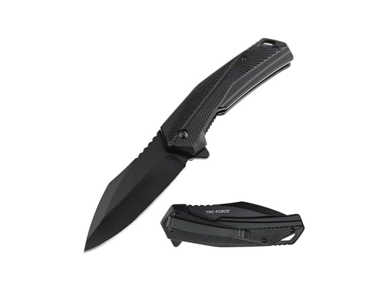 - Tac-Force Folding Pocket Knife, 8.3-inch Overall Length, 3.58-inch Blade, Anodized Aluminum Handle, Black, EDC - TF-2018BK