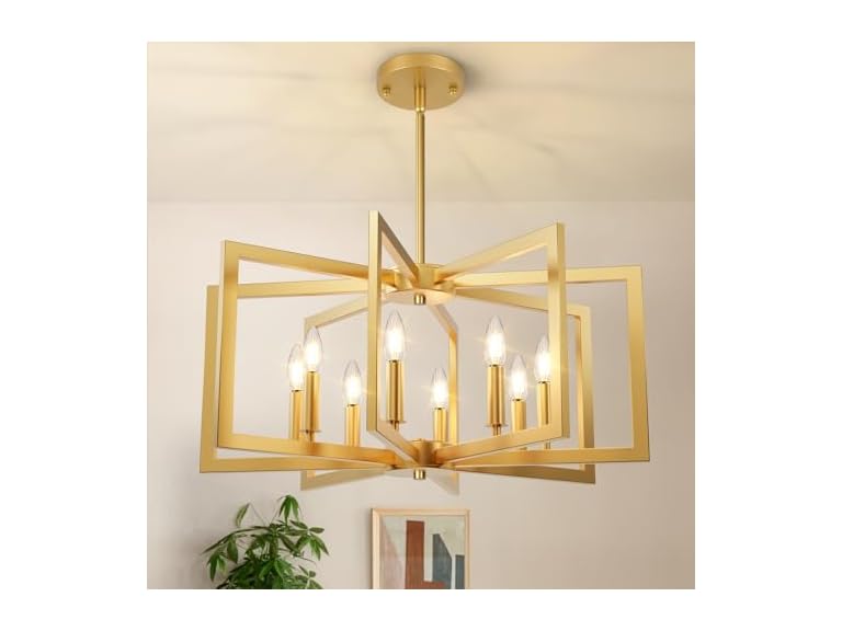 In the Box: (1) 8-Light Chandelier, Farmhouse Dining Room Light Fixture, Modern Chandelier, Geometric Industrial Metal -Choose Color