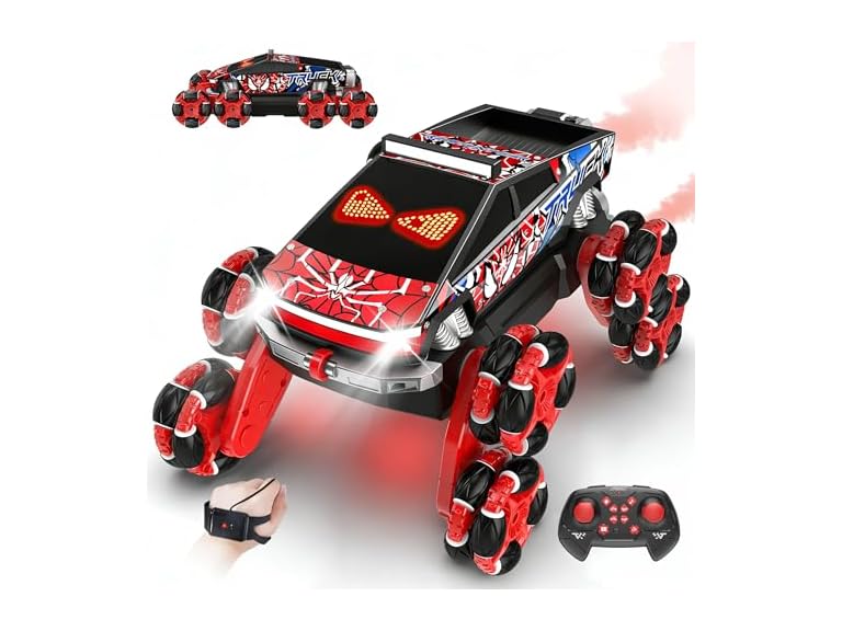 - Coolest Gift for Boys & Kids Age 6-12:This 8WD gesture sensing RC stunt car combines thrilling stunts, dual spray effects, DIY customization, and long-lasting durability—making it the ideal gift for boys and kids aged 8-10. Ideal for birthdays, Christmas, Children’s Day, or any holiday, it not only brings joy but also cultivates hand-eye coordination and creativity