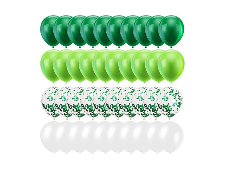 - ☘️Best Value Pack - Package Contains 80 pieces St Patricks latex balloons(20 Dark green & 20 green & 20 White & 20 Confetti Green); 10m long x 2pcs ribbons green&white.