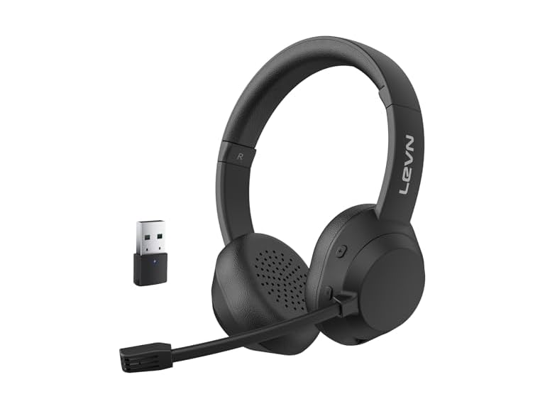 - [Various Office-ready Compatibility]: Designed to fit seamlessly into your professional life, LEVN wireless headset works perfectly with popular office software. Ensures you can easily collaborate between work calls, virtual meetings, and personal entertainment, making it a versatile companion for professional and leisure activities. This wireless headset with mic enhances your overall experience, whether engaged in vital business conversations or enjoying your favorite music.