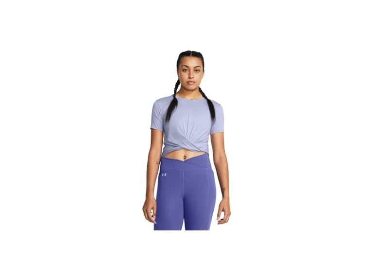 - (1) Under Armour Women's Motion Crossover Short Sleeve Crop, (539) Celeste / / White, X-Large